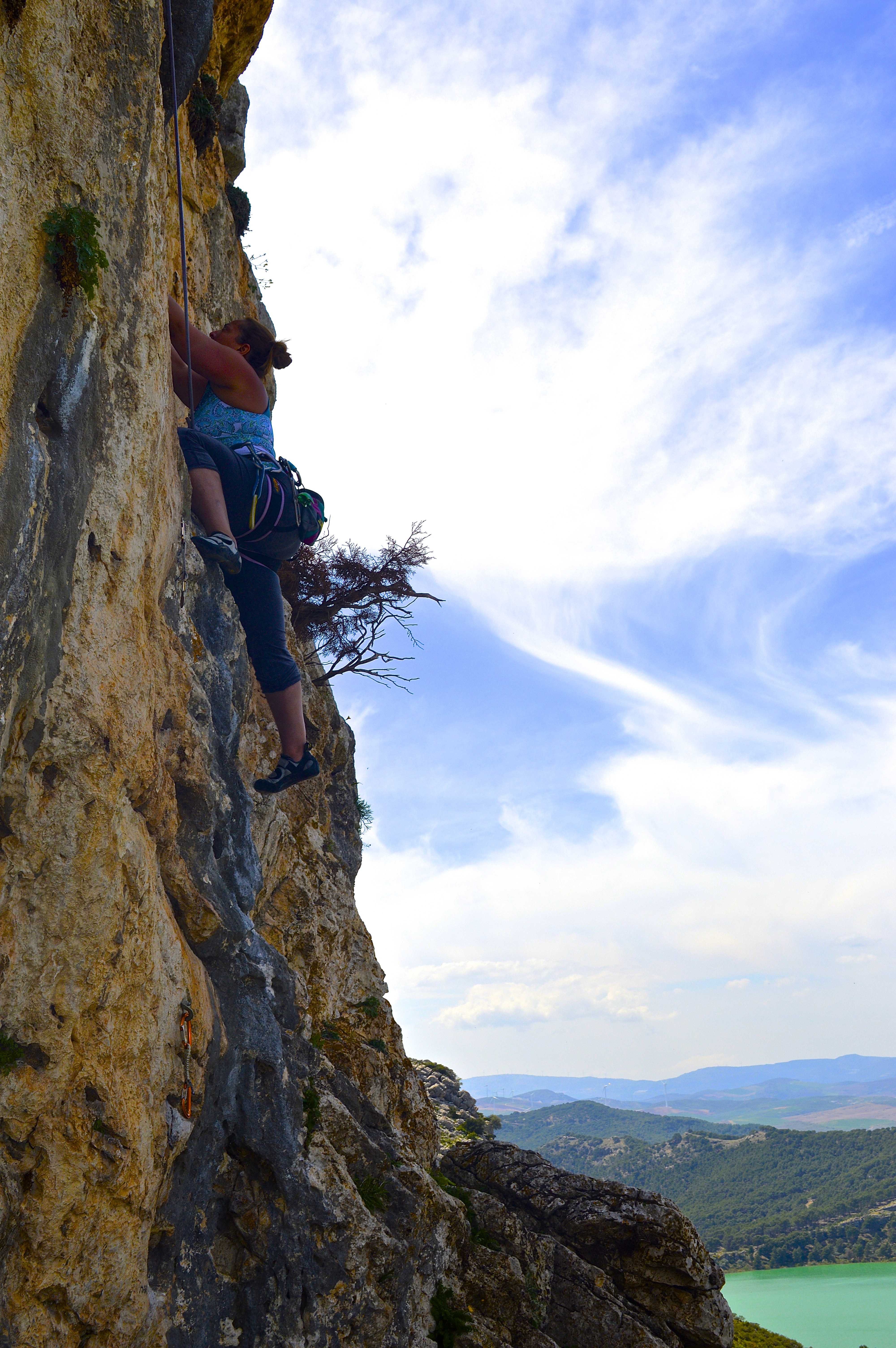 This is a climb that was kicking my butt, it was above the 11a range so I expected some butt whipping. I hate to top rope and stepped out of my comfort zone, here I am working the moves to figure out how to work the lead redpoint. No red point, I fell trying to clip the anchors on my last lead go. It was ok, getting up it was joyous enough for me.