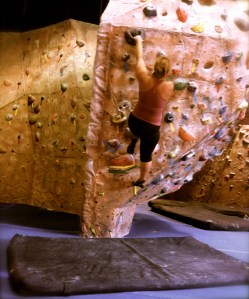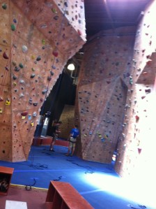 - Facility – The gym is about 12,000 square feet and equipped with tons of lead, top rope and bouldering routes. The height of the lead and top rope routes are just at or under 30 feet (the regulations were more strict when ths gym was built over 17 years ago!). There is a great variety of routes from slab, crack, vertical, slightly overhung to Jesus you in a cave its nice and overhung! There is also a workout gym area with a variety of equipment and this gym has yoga three times per week, be sure to call and check in on that schedule if you are interested in a climbing & yoga workout. The bathrooms are roomy, clean, equipped with showers and lockers.
